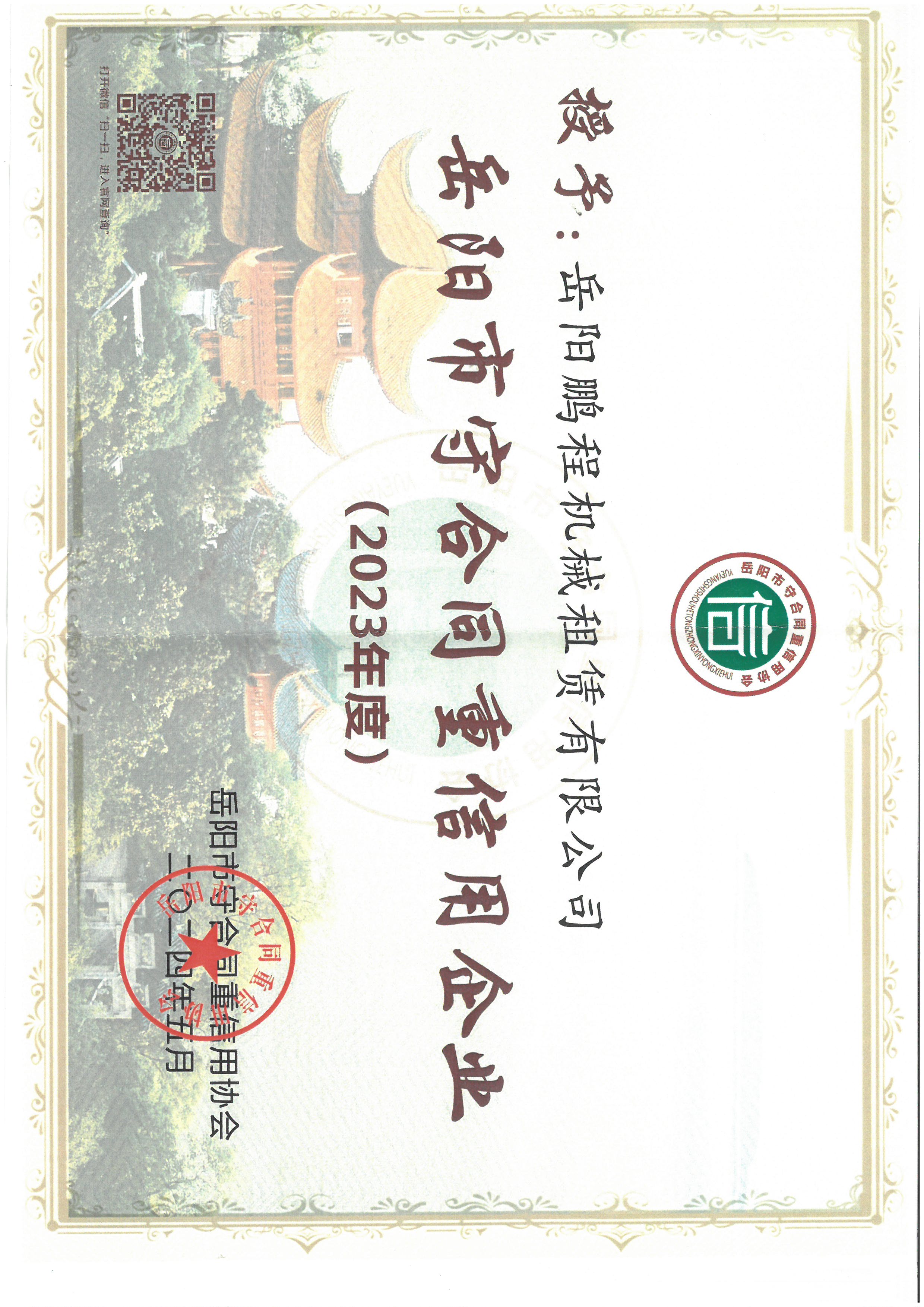 岳陽市2023年度守合同重信用(鵬程機械)